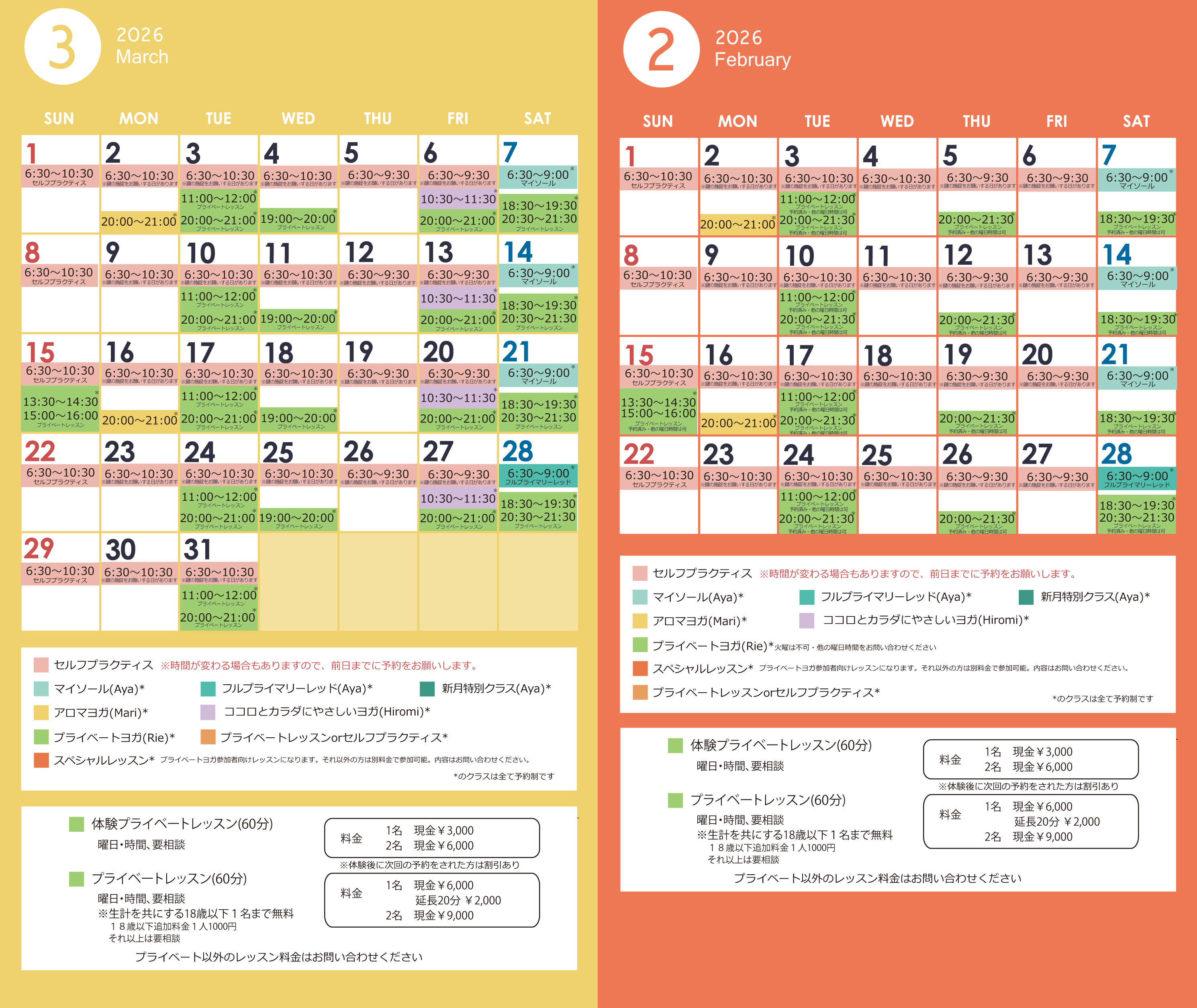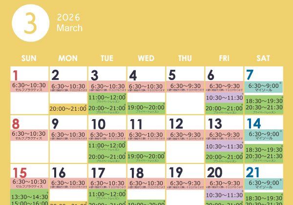 3月のレッスンスケジュールを更新しました